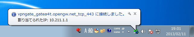 VPN の接続に成功すると、下図のような通知が表示されます。